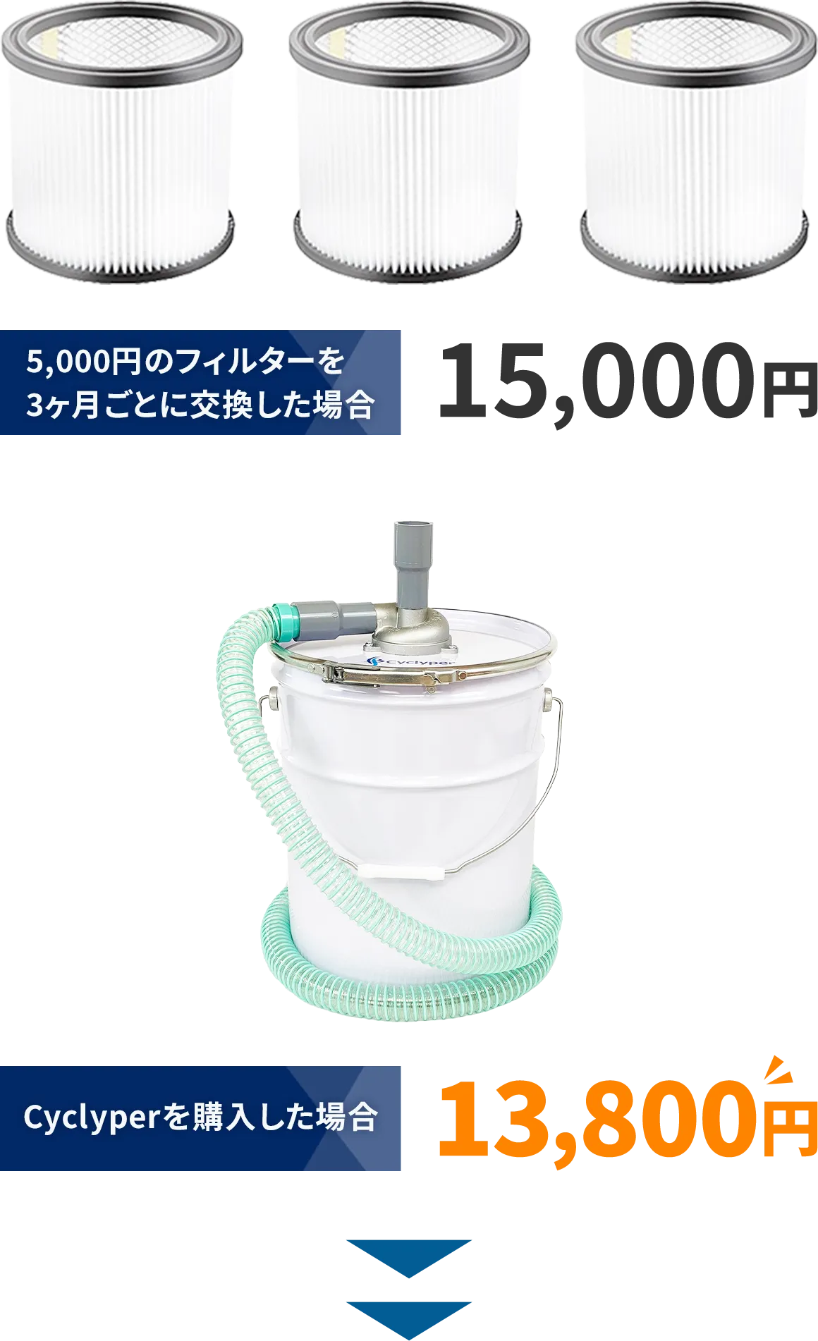 Cyclyperを使用すると、フィルターの交換頻度が激減!