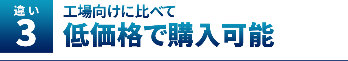 大きさや構造が違いますが、おおよそ工場用は8万円~20万円前後のものが多い一方で、弊社のサイクリーパーは1万円強で購入できます。そのためコストメリットがあります。また小型で取り回しも良いです。