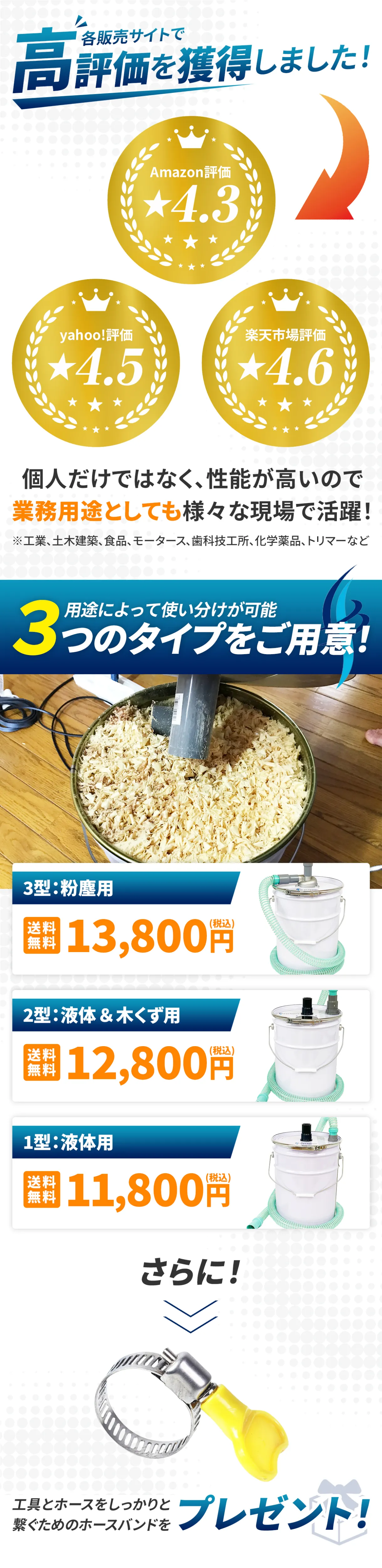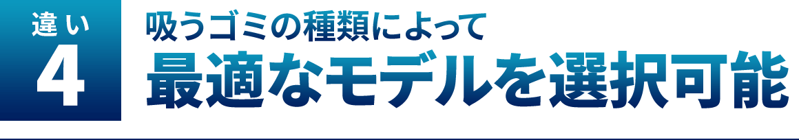 他社は1製品だけのものが多いですが、弊社は吸うゴミの種類によって1型、2型、3型と3つのラインナップがあります。