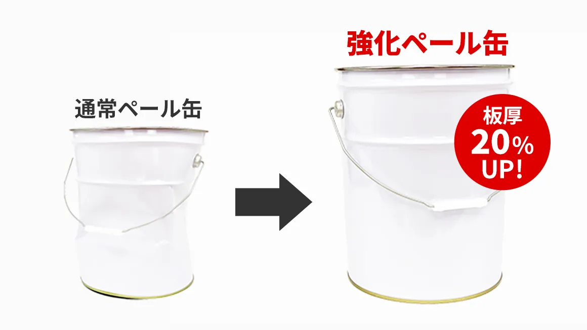 ゴミが詰まってしまったとき通常のペール缶の場合、真空になって潰れてしまう場合があります。弊社のサイクリーパーは板厚が20%UPした強化ペール缶を使うことで、ゴミが詰まっても潰れにくいことを実現しました。